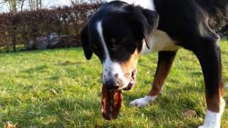 Appenzell Mountain Dog eating raw hare carcass *Delicious!* Raw Feeding for Dogs