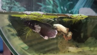 Betta breeding (Siamese fighting fish) Day 1 - Blood worms, bubble nest and oak leaves