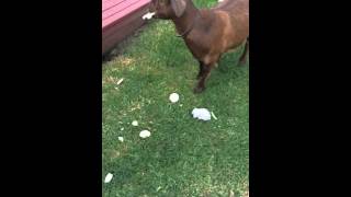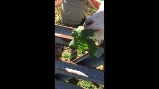 Rebel the goat eating Cayenne peppers